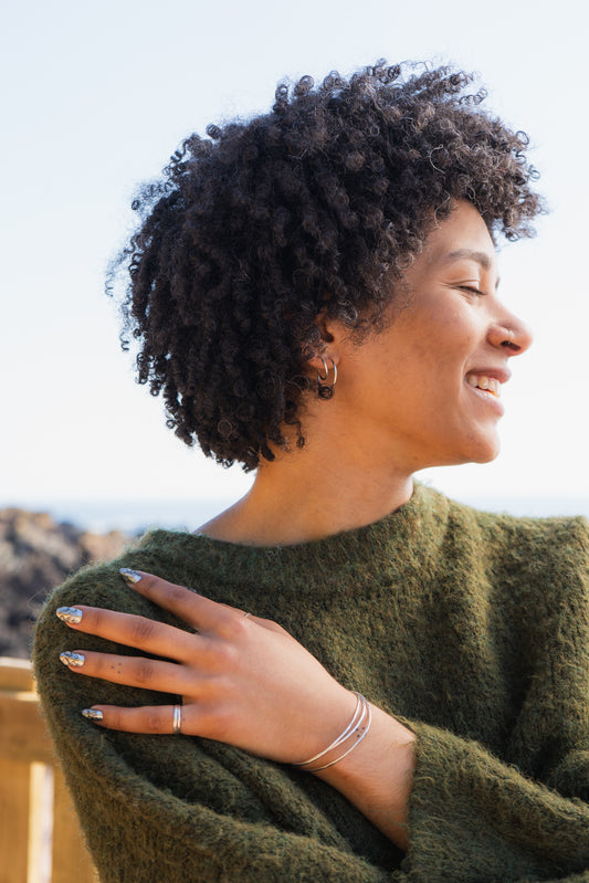 This jewellery collection is inspired by the horizon line from Irvine Beach, on the West Coast of Scotland. Each and every piece is handmade in Glasgow from recycled sterling silver.