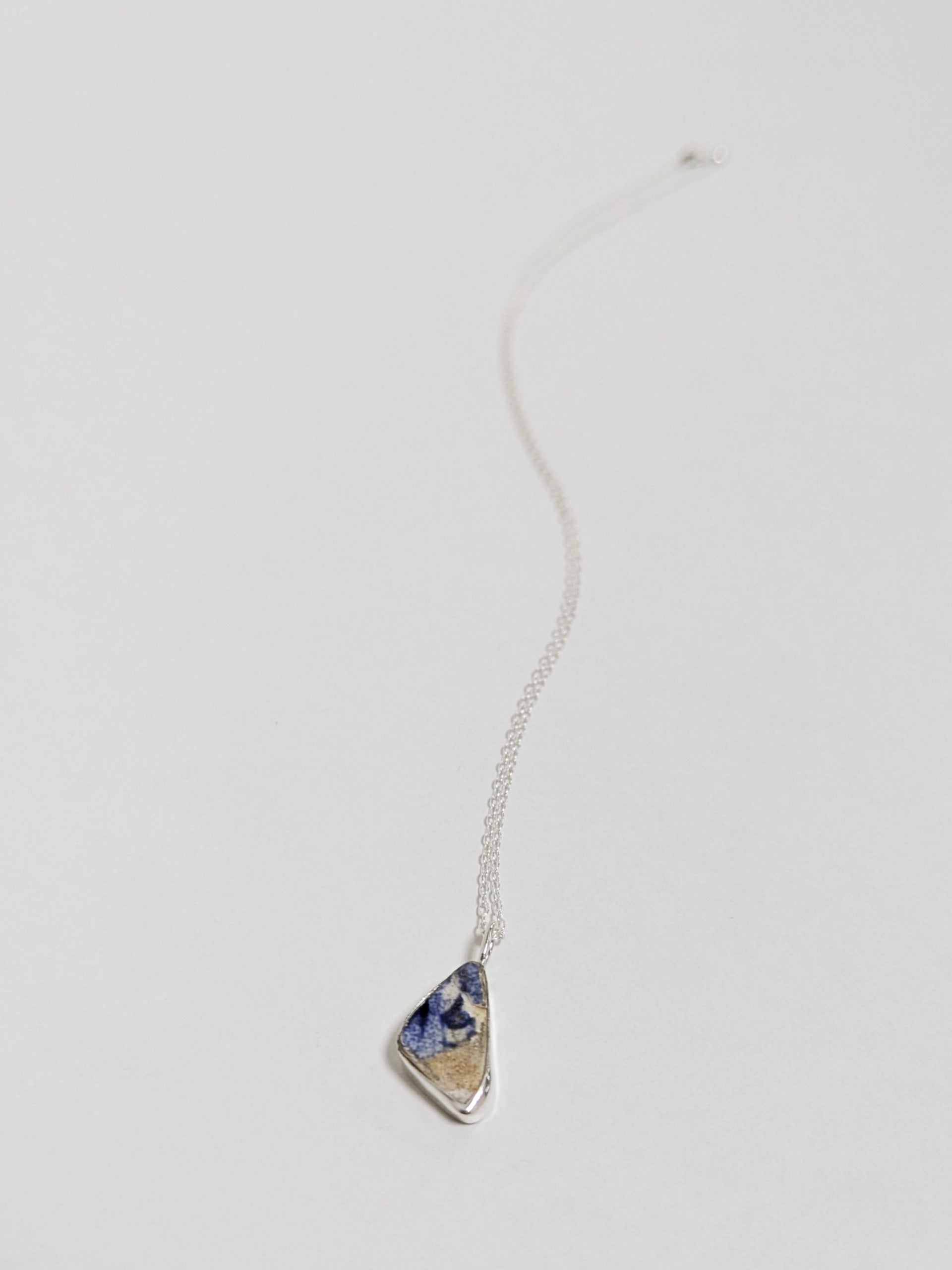 This beautiful tiny sea pottery piece was hand-picked in North Berwick, on the East Coast of Scotland. Handmade from recycled sterling silver, this necklace also comes with a 16" chain. The pendant measures approx 6mm in length.